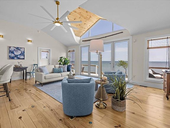 Answer the call of the Bay in style at 907 Bay Tree Beach Rd. This custom-built coastal retreat in Seaford channels Outer Banks vibes—right here in Hampton Roads. Perfectly positioned on the Chesapeake Bay, it features a breathtaking 12’ folding glass wall showcasing panoramic water views. Inside, vaulted ceilings, sea-tinted wood floors, and nautical accents create a refined coastal feel. The chef’s kitchen boasts quartz counters, a gas range, butler’s pantry, wine rack, and a signature porthole window. French and pocket doors, clerestory windows, and salvaged brass ship lights add distinctive character throughout. With 3 bedrooms, 2.5 spa-like baths, and a 4-bay garage for all your coastal toys, this home blends comfort and craftsmanship. Step outside to the spacious deck, enjoy the riprap shoreline, and let the Bay breeze remind you—you’re finally home.