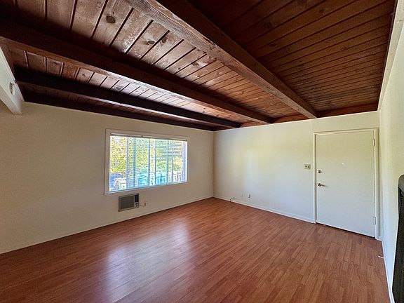 Adorable 2 bedroom, 1 bathroom end unit located in a 5-plex in desired Lafayette! No neighbors above or below! This is located in a great location very close to downtown, BART, shops, restaurants, schools, park close by, and close to freeway access! Washer and dryer in laundry room. Upon entering living room there is beautiful laminate wood flooring and wood beam ceilings. Adjoining eating area with laminate wood floors. Kitchen has tile flooring, gas range/oven with refrigerator included. Off of the kitchen is a nice size laundry room. Small porch off of laundry room. Bedroom one and two have new carpet. Hallway has linen closet. Bathroom has beautiful tile with shower over tub and vanity. Unit has wall heater and wall A/C. Water included in rent! NO SMOKING! NO PETS!