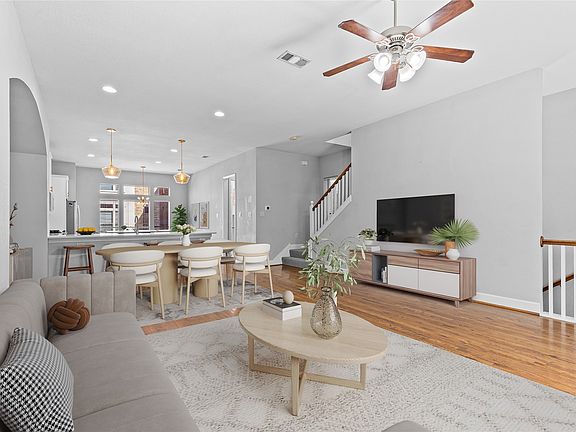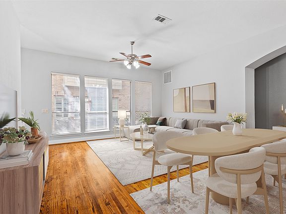 Welcome to this stunningly remodeled townhome in the heart of Dallas and just steps to the Farmers Market! With an impressive Walk Score of 94 and exceptional storage throughout, this home perfectly blends city convenience with private, gated living. When walk in from your 2 car garage you have a bedroom complete with an ensuite bath, walk-in closet, and incredible storage under the stairs. This bedroom makes for an ideal office space or guest suite. On the main level, soaring 10-foot ceilings, hardwood floors, and an open-concept layout set the tone for effortless entertaining. The remodeled chef’s kitchen features quartz countertops, a farmhouse sink, six-burner gas range, and a freestanding island. The primary suite boasts a spa-inspired bath with an oversized walk-in shower wrapped in floor-to-ceiling porcelain, gold-tone fixtures, and dual vanities—truly a showstopper. Located on the same level is a third bedroom with ensuite bath and updated finishes. The rooftop terrace is an entertainer’s dream with custom turfgrass, space for dining and grilling, and panoramic city views make it the ideal retreat. A fenced backyard offers additional outdoor space perfects for pets. Enjoy unbeatable proximity to Dallas Farmers Market, the Arts District, Klyde Warren Park and more! Urban living at its finest.