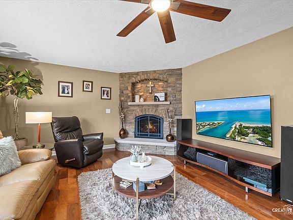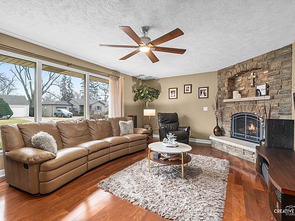 Welcome home to this immaculate brick ranch! This stunning 3 bedroom, 3 bathroom, ranch nestled on a fenced corner lot offers the perfect blend of comfort and style. Step inside and be greeted by an expansive open floorplan, featuring a spacious great room with gleaming hardwood floors and a cozy stone fireplace. The eat in kitchen is a chefs dream, boasting custom cabinetry, elegant granite counter tops and stainless steel appliances. A convenient first floor laundry room with built shelving, sink and cabinetry adds a touch of practicality. The luxurious master suite is true retreat, complete with a walk in closet and private bath featuring heated floors and a oversized shower with seat. Bedroom 2 is generously sized and built in bunk will stay. Custom spiral staircase leads to finished basement that has a large family room , perfect for gatherings,  3rd bedroom with built in murphy's bed and full bathroom with spa like shower. Abundant storage space is available throughout the home,  including a dedicated storage room and a tool room. A secondary staircase conveniently leads to the attached garage. The  2nd car garage is heated. This home is in move-in condition. Must see all of the upgrades and custom finishes. It certainly will not disappoint!
