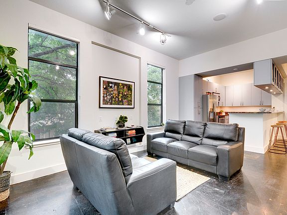 Attractive condo with great outdoor space, central location, high ceilings, and open floor plan. Easy walking distance to UT campus as well as many local restaurants and shops. Finish out includes fresh coat of paint, stainless steel appliances, granite countertops, and stained concrete flooring. Enjoy relaxing on the oversized private back patio under a canopy of oak trees. Spectacular! Condo complex has fenced yard below for the residents to use. All appliances including brand new W/D convey with sale.