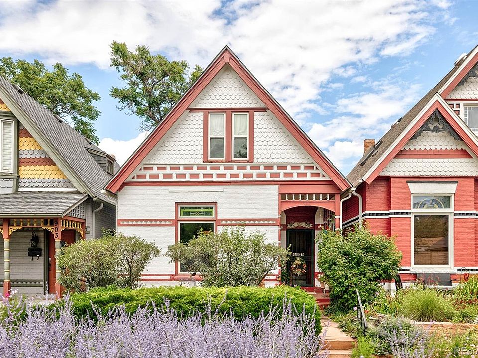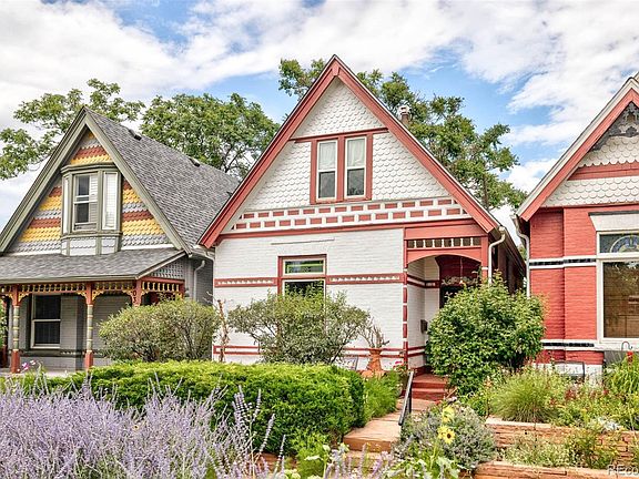 Beaming with charm and character, this Victorian home is a timeless retreat. Enveloped by lush greenery, a front patio crafts an inviting first impression. Further inside, a luminous layout unfolds w/ beautiful wood floors and neutral tile throughout. Thoughtfully placed skylights and large windows invite natural light to pour into the home inspiring a bright and airy atmosphere. Exposed brick warms a spacious living area. A formal dining room offers the perfect setting for hosting at-home soirees w/ guests. Ample storage is found in a large kitchen w/ abundant cabinetry. Sliding glass doors open to a private garden patio — an enchanting setting to enjoy afternoon tea or relaxing outdoors w/ guests. Residents enjoy an ideal location in a historic neighborhood w/ proximity to Five Points, Uptown and central Denver plus easy access to grocery stores, restaurants and outdoor recreation. Value-priced for someone ready to move in now or to update or renovate to reflect your unique lifestyle.