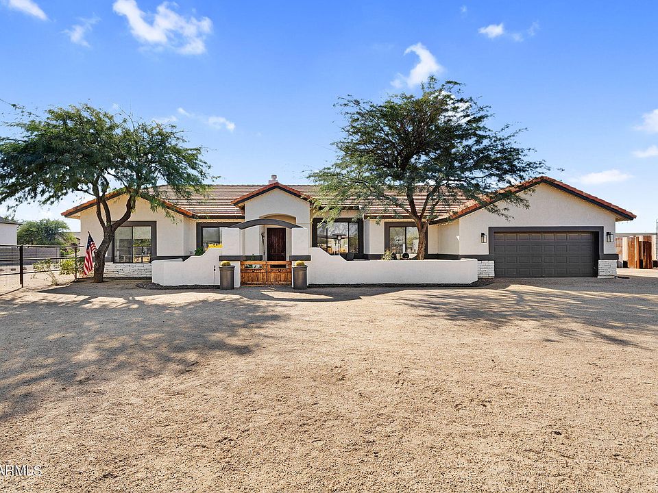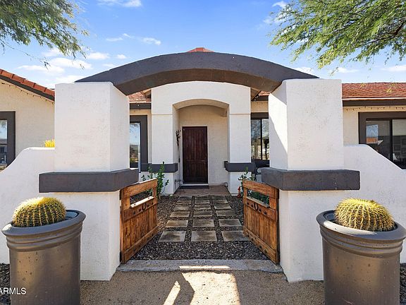 Exceptional Desert Hills horse property featuring a beautiful 3 bedroom + office/flex 3 bath home with private pool, riding trails nearby, and Cave Creek Water. This move-in-ready equestrian estate includes a 2023 barn with 4 oversized stalls, 12' breezeway, dual gates, and a lighted arena with premium footing — perfect for training or recreation. Enjoy a spacious kitchen, master suite with fireplace and custom closet, HVAC systems are 2022 and 2025 for comfort and efficiency. A 24x30 additional garage with 120V power, large turnout, and fully fenced property offer the ideal setup for horses, storage, and privacy. Located in a highly desirable area close to trails, dining, and shopping, this property stands out as one of the areas best equestrian homes.