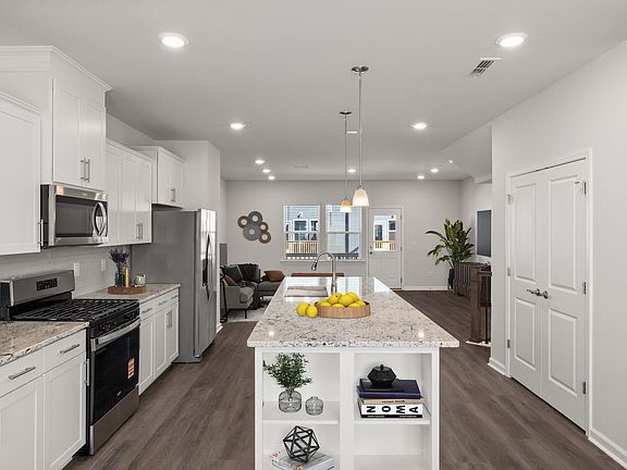 ''Welcome to Everton, a new townhome community just minutes from Brier Creek's best shopping, dining, and recreation. This stylish tri-level townhome offers 3 bedrooms, 3.5 baths, and a rear-load 2-car garage, blending functionality, comfort, and convenience. Step into an open-concept kitchen featuring stone gray cabinetry, White G granite countertops, and Oyster Oak 7'''' plank EVP flooring—perfect for entertaining. The adjacent private deck creates an inviting space for dinner parties or relaxing outdoors. The Owner's Suite impresses with a tray ceiling, recessed lighting, and a spa-inspired bath complete with quartz countertops, dual vanity, and a tiled walk-in shower with bench. Guests will appreciate the first-floor suite with its own bath and walk-in shower, offering privacy and comfort. Enjoy Energy Star® efficiency for lower utility costs and peace of mind, plus Spectrum internet and cable included with HOA dues, keeping you connected without extra hassle. Stylish, spacious, and close to everything—this is the lifestyle you've been waiting for!''