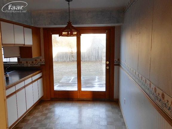 HUD Home. Mott Park Area. Three Bedroom Cape Cod. Updated Kitchen with attached Dining Room that has sliding glass doors to a wood deck. Large Living Room with fireplace and hardwood floors. Basement is partially finished. Attached one car garage. Fenced in back yard.