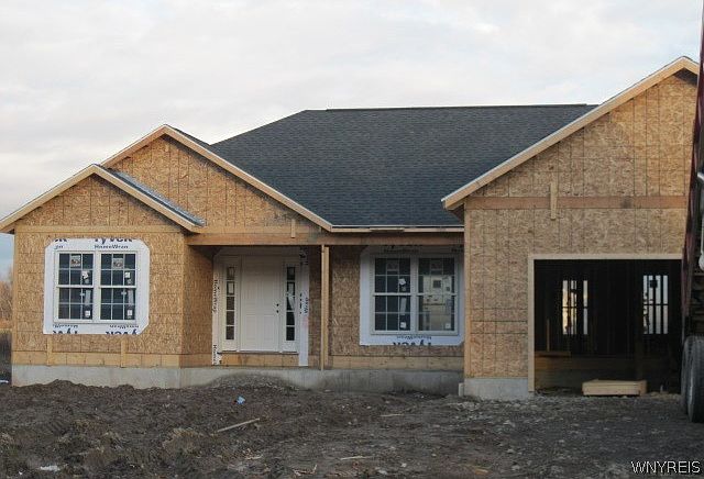 ENJOY EASY RANCH STYLE LIVING! STONE AND VINYL EXTERIOR. GREAT ALTERNATIVE TO A PATIO HOME. NO ASSOCIATION FEES. GREAT OPEN FLOOR PLAN HAS MASTER BEDRM. SUITE ON ONE SIDE OF HOUSE AND GUEST ROOMS ON OPPOSITE SIDE. GREAT ROOM HAS CATHEDRAL CEILING AND GAS FIREPLACE. DINING ROOM CAN BE A LOVELY LIBRARY/DEN. FULL BASEMENT HAS A DAYLIGHT WINDOW ALLOWING LEGAL FINISHING OF BASEMENT FOR ADDITIONAL BEDRM. OR REC. ROOM. GOURMET KITCHEN HAS 12 X 10 DINING AREA WITH SLIDING DOORS TO A CONCRETE PATIO, GRANITE COUNTERTOPS, PANTRY. MICROWAVE, DISHWASHER INCLUDED. FIRST FLOOR LAUNDRY RM IS OFF THE GARAGE ENTRY AND LARGE MUD ROOM. BUYER STILL HAS TIME TO MAKE SOME SELECTIONS TO CUSTOMIZE YOUR TASTE IN FLOORING AND CABINETRY. EASY ACCESS TO RT 400 W/ 30 MIN. DRIVE TO BUFFALO. IROQUOIS SCHOOLS.