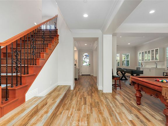 Nestled at the end of a quiet cul-de-sac in the gated Heron Pointe community, this stunning 4-bedroom, 5.5-bath home offers 3,889 sq ft of beautifully upgraded living space, just minutes from the beach and wetlands. Featuring a remodeled downstairs living area with wine fridge, a gourmet kitchen with upgraded countertops, KitchenAid refrigerator, a Viking 5 burner range, and custom cabinetry, and a remodeled master bath. Each bedroom includes an ensuite bath, with one full suite conveniently located on the main floor. Step outside to a resort-style backyard with a saltwater spool featuring a waterfall and fireplace, a built-in BBQ island with seating, and a covered California Room with TV and wine cooler. Additional upgrades include paid-off solar, two new A/C units installed in 2023, and a three-car tandem garage. Perfectly blending indoor-outdoor living, coastal charm, and modern luxury, this home is a rare find in Seal Beach.