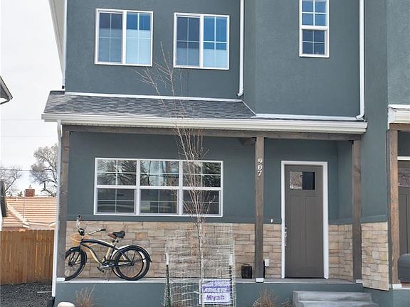 Beautiful townhome in a great location! 4 Bedrooms including a primary bedroom with great mountain views on the second floor. Primary bedroom has walk-in closet and large bathroom with two sinks and custom tile shower with glass door. Upper level also has another full bathroom and 2 additional bedrooms, one with a walk-in closet. Upper level also has large laundry closet with built in cabinets. Main floor bedroom has sliding glass door opening to back deck, main level also has a full bathroom. Large living room with mountain views, high ceilings with recessed lighting and modern finishes. Kitchen features a large pantry, quartz countertops, stainless appliances, custom pendant lights and a breakfast bar opening to the living area. Laminate wood floors in living areas and bedrooms, custom tile in all bathrooms and elegant fixtures throughout. Front yard features new turf and a covered front deck with recessed lighting. Private, fenced and landscaped back yard with large deck, new low maintenance turf. New hot tub where you have a full view of Tenderfoot (S) Mountain. Detached garage with alley access behind home with an additional off-street parking spot to the side. Attractive exterior has stucco with stone accents and stained shingles on the gables. 2 blocks to Longfellow elementary school and close to bike path for easy access to downtown, Arkansas river, trails restaurants, parks, etc.