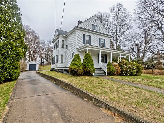 Charming 5-bedroom, 2.5-bath Colonial in Agawam's sought-after historic district! This 1,990 sq ft home features a classic wraparound porch, perfect for relaxing mornings or peaceful evenings. Inside, enjoy a spacious living room with bay windows and a cozy fireplace, a bright kitchen that flows into a sunlit sunroom, and a warm den ideal for a home office or movie night. The large primary bedroom offers comfort and privacy. Need more space? The massive 3-car garage includes a full second floor—ideal for a studio, office, or potential in-law space. A separate shed provides extra storage for gear and tools.Short distance to the town center, schools, churches, restaurants, and shops. A perfect mix of character, potential, and location—don’t miss this opportunity!