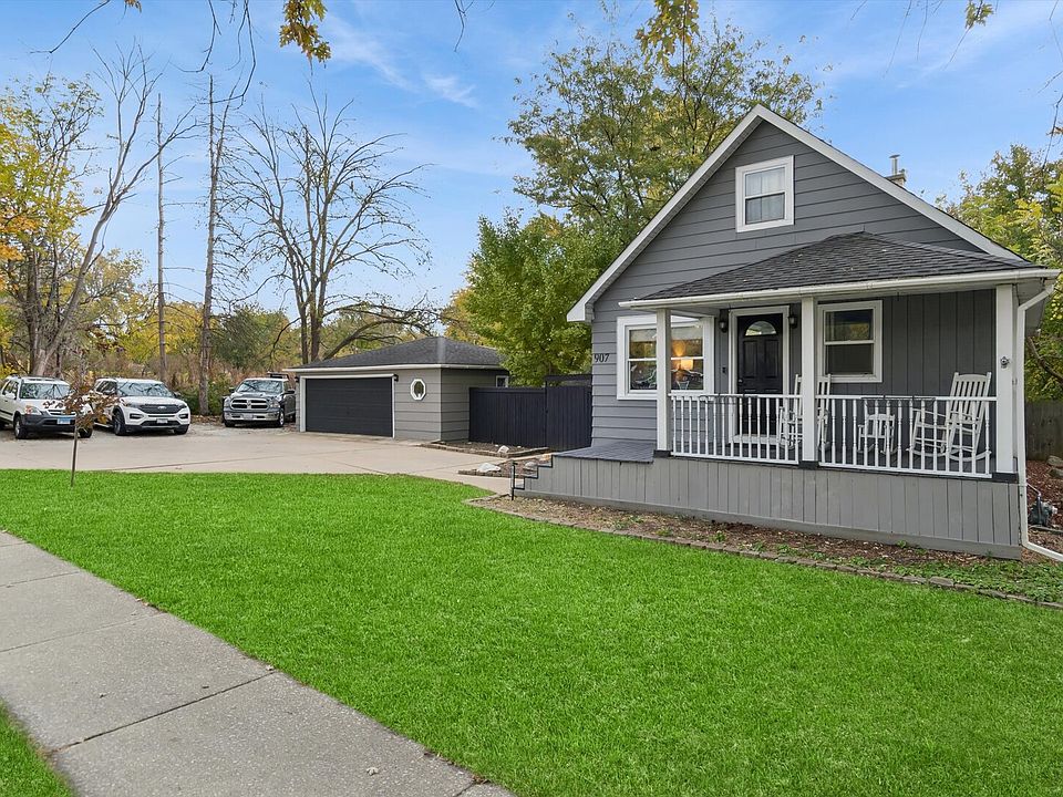 Charming updated home offers modern touches, spacious private fenced-in backyard and is close to the Lisle Metra Train Station, I-355 and I-88. Welcome to 907 Maple Ave, a beautifully updated home that blends timeless character with modern convenience. From the moment you arrive, the inviting front porch and fresh gray exterior set the tone for the warmth and style that await inside. The living room offers a bright and open living space featuring laminate wood flooring and neutral paint. Flow seamlessly into the dining area-ideal for gatherings-just steps from the updated kitchen. The kitchen boasts refreshed cabinetry, modern countertops, and ample storage, creating a space that's both functional and stylish. The primary bedroom is located on the main level and has excellent natural lighting, neutral decor and ceiling fan. There is also a full bath on the main level with updated fixtures. Upstairs, you'll find a sitting room that offers many possibilities, game room, office, craft room, library just bring your imagination. There is also a large comfortable bedroom and another full bathroom with modern fixtures. Outside, enjoy the large deck, spacious private backyard complete with a cozy fire pit and storage shed with electricity. There is ample driveway parking (6+ spaces) and a heated and insulated 2.5 car garage. A gravel parking spot behind the garage is perfect for parking your RV or trailer. This home offers the perfect combination of character, comfort and convenience.