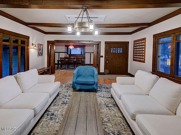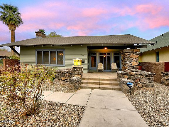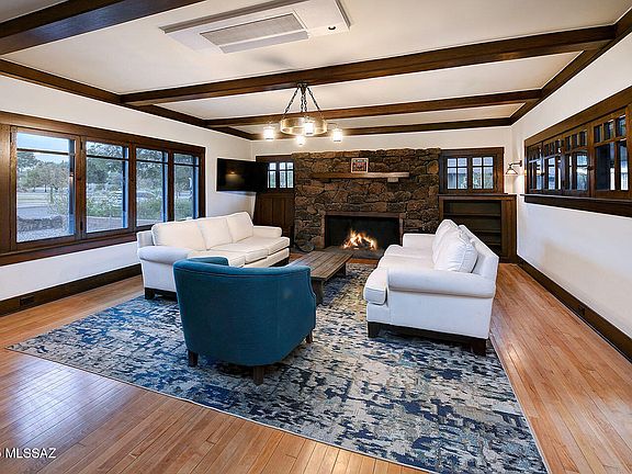 In the heart of West University, the storied ''Rock House'' stands as a rare gem of Tucson's architectural heritage. Lovingly restored, this historic residence is built from volcanic rock quarried from iconic ''A'' Mountain, a testament to enduring craftsmanship. Inside, the original maple wood floors are complemented by finely preserved wood posts and built-in features that echo the home's early 20th-century roots. A striking fireplace anchors the living space, flanked by custom built-ins. The kitchen is a chef's delight--thoughtfully updated with a five-burner range, glass-front cabinetry, mesquite floating shelves, and recessed lighting, all while maintaining the home's classic character. The built-in library adds a touch of sophistication, while the updated hall bath serves the second bedroom. The primary suite offers a peaceful retreat with an ensuite bath featuring a large walk-in shower, a separate soaking tub, and expansive walk-in closets. Comfort is ensured with ceiling-mounted mini splits, and the main house boasts a brand-new roof. A detached guest house completes the property, featuring its own brick fireplace, honed concrete floors, a kitchenette, full bath, and a spacious closet with a built-in dresser, ideal for visitors or extended stays. Fully walled and private, the home sits across from a cherished Catalina park and is recognized on both the City and National Historic Registers. Owner-occupants benefit from a generous 35-45% property tax reduction. Off street parking in your garage-port. Just a short walk from the University of Arizona, 4th Avenue, downtown, and the Modern Streetcar, the Rock House offers the rare opportunity to own a piece of Tucson history in one of its most vibrant and walkable neighborhoods. The Sellers are licensed Real Estate Brokers in the state of Texas.