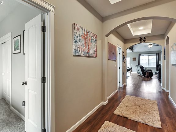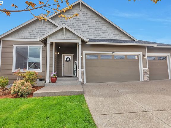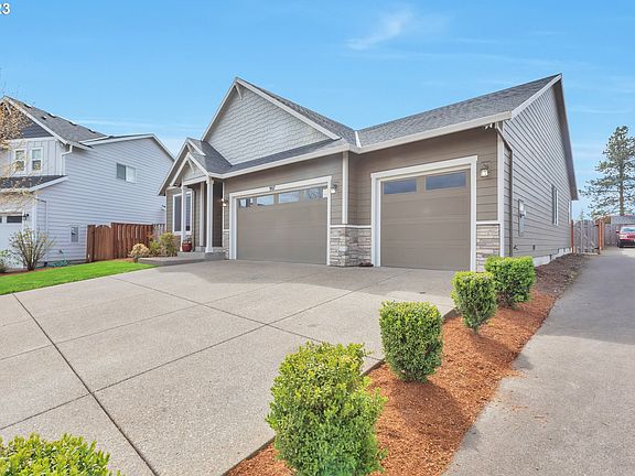 Welcome home to this like-new 4 bedroom, 2 bath ranch style home in the lovely Carlton Crest neighborhood. Sitting on a large lot of almost a quarter acre, there is plenty of room for toys and RV parking! Soaring vaulted ceilings in the great room and primary bedroom make these rooms seem even bigger than they already are. Enjoy cooking in the large gourmet kitchen with an oversized island and eating bar. Beautiful custom cabinets and slab granite countertops with a full tile backsplash. Stainless steel appliances and a roomy pantry. The primary bedroom is huge and features an en-suite bath with large walk-in shower and dual vanity. Roomy walk-in closet with built-ins for easy storage. 2nd bedroom features a nice built-in entertainment center making this a great media or gaming room. Cozy fireplace to stay warm in the winter, and a heat pump to provide cool A/C in the summer. Beautiful backyard has a covered patio and large landscaped yard with plenty of room to entertain. Side yard has raised garden beds just waiting to be planted and a cool custom built herb garden wall. The backyard is fully fenced and features a 16ft sliding gate for easy access to the RV parking area. Conduit already installed under concrete to add power for RV or other toys in the future. Sweet 3-car garage has been insulated, heated and vented. Huge attic gives you tons of extra storage space. Located on a quiet culdesac in a great neighborhood where you can walk to the community park, or you are just minutes away from all of Carlton's restaurants, shopping, local wineries and tasting rooms.
