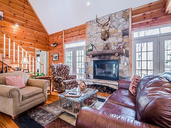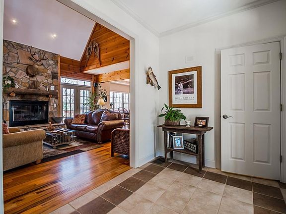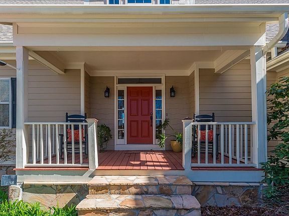 SOUTHERN LIVING CRAFTSMEN COUPLED WITH ACREAGE...Welcoming foyer entrance with stunning full stone fireplace w/ raised hearth and wood storage,red oak floors, and french doors open to multiple levels of decking,screened porch w/ built in tv and grilling areas. Chefs kitchen boasts granite counter tops,massive island w/deep pan storage,slim cook-top,built in wine rack,bar seating,and shaker cabinets. Master on main w/ upgraded en-suite. Two bedrooms upstairs w/central bath and bridge connection. PLUS FINISHED basement w/full bath,game room,fireplace,bar and workshop.