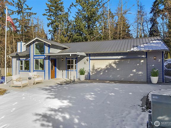Escape to your private retreat on Camano Island! This move-in-ready home is nestled on a private 1.3-acre lot, offering serene views from every window. Enjoy the warmth of radiant floor heating & a wood burning fireplace. Vaulted ceilings & large windows let in an abundance of natural light. The kitchen features white cabinets, granite countertops, & ample storage. Large primary suite has tall ceilings a walk in closet & ensuite with a large shower & jetted tub. You will love the wide halls & door ways! A large garage, covered RV parking, there’s room for all your needs. Freshly painted & ready for you—don’t miss this peaceful getaway close to local parks and beaches. Just in time for shrimping & crabbing season. Wheelchair accessible.