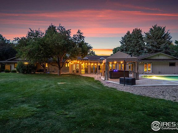 Beautiful home located on a cul-de-sac coveted Breakwater Estates Neighborhood. This secluded 1.08 Acre lot boasts an open concept custom ranch home backing to open space with foothills views. Step inside this one of a kind 4 bedroom, 4 bathroom, large office, 5200 sq foot home featuring beamed ceiling, hand scraped wood floors, 2 fireplaces, 3 car attached garage and an oversized owners suite. Entertainers dream with the large kitchen island, fully custom Tharp cabinets, walk in pantry and high end appliances. Step into the backyard oasis surrounded by a new privacy fence, large flagstone patio surrounding the private in-ground saltwater pool, cabana featuring a new master spa hot tub. Home also offers dual zones High Efficiency furnace/AC, tankless hot water heater and active radon system. Unbeatable location with access to shopping, restaurants, Trails, Warren Park, Collindale Golf Course! Home does NOT have water access to Harmony Reservoir or Warren Lake.