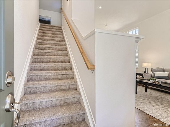 Pristine single-family home in the desirable Cottages at Crescent Park community! This exceptional 2-story home offers a beautifully appointed floorplan boasting a rare and coveted main level primary suite, an elegant great room with a gas fireplace and soaring 12-foot ceiling, and a sparkling gourmet kitchen overlooking a light-filled dining area for easy entertaining. The upper level is complete with a loft and two spacious bedrooms serviced by a quality full bath, and there is ample space in the full basement for storage or to finish to your heart’s desire! The many wonderful features throughout include big bright energy efficient windows with quality coverings, a main level powder bath and laundry room, a large loft to serve as flex space for your needs, and high-end appliances including a gas range with convection options. The home additionally boasts hardwood flooring and new carpet, fresh paint, a tranquil private courtyard with a pergola and privacy fence, a warm and inviting front porch, an attached 2-car garage and more! Prime location steps from Westerly Creek and its accompanying trail system, and within perfect proximity to renowned Crescent Park, Montclair Rec Center, hip Hangar 2 dining, Lowry Beer Garden, Lowry Town Center, and all the exciting new Boulevard One amenities. The Cottages at Crescent Park homes are highly desired and rare to the market... don’t miss this chance to make this one your own!