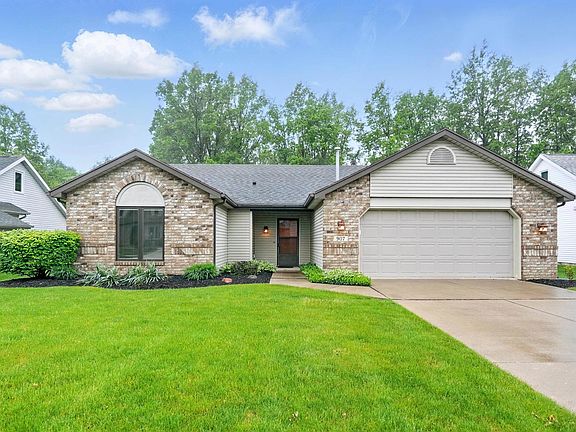 Welcome to this well maintained ranch home in Millstone Village, offering 3 bedrooms, 2 full bathrooms, on a quiet side street with woods behind the property. The brick and vinyl exterior should catch your eye as the curb appeal is terrific. Once inside you will enjoy the 20x14 vaulted great room, and feel right at home in the kitchen which includes all appliances, has a newer kitchen faucet, under cabinet lighting, and a pantry. The primary bedroom is 13x12 with a walk-in closet, and there is a full bathroom with tile floors, & tile step-in shower. Beds 2 & 3, another full bathroom, laundry facility, storage & linen closets complete the design. The Furnace and Air conditioner were replaced Feb 2024. There is also a humidifier. The roof is 11 yrs old. Enjoy the view from the back patio, where you will find landscape lights. The garage has pull-down attic stairs to access storage. The location between Coldwater Rd and Lima Rd leaves you near restaurants, grocery shopping, schools, and the Pufferbelly Trail runs just east of this neighborhood. Walking sidewalks run through the neighborhood and there is a playground at the end of Medallion Run. Terrific setting!!