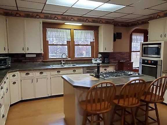As the saying goes…Location! Location! Location! This property not only has a fantastic location off tarred county road just minutes from town, it offers 9+ level Acres, very spacious 5 BR/2 BA home of historic brick architectural 2 story design, Great gardening space, 2 hoop buildings and several outbuildings/sheds for hobbies/small business. Home offers 3090 finished square footage, Kitchen with center island, granite simulated counters, stainless steel appliances, office/den, 4 BRs on Upper Level, original woodwork, hardwood floors, extended exterior living space on updated open Porch & Deck. Updated roofs-soffits -facia, upper exterior peak siding, windows, some flooring and HVAC systems, Propane & Corn Pellet F/A Heat systems, C/A. Full, unfinished basement, walkup attic. Bring your décor' style to make this your perfect home. A Must See! Call for appointment. Cash or Conventional Financing only.