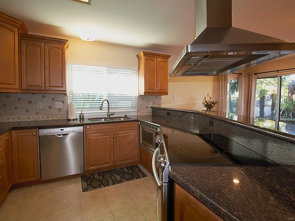 Come see this beautiful 1649 sq ft. 3-bedroom 2-bath single-story home located in the Poway Unified School District neighborhood of Rancho Penasquitos! The primary bedroom features its own slider door entrance to the backyard oasis that has an array of mature bearing fruit trees with stunningly manicured palm trees already wired for uplighting. Also features views of Black Mtn and a palapa tent perfect for watching the sunset while entertaining guests! Freshly painted exterior! Inside find remodeled and upgraded bathrooms and a kitchen fully equipped with modern appliances, range hood, and plenty of countertop space for meal prep. 2 car garage with ample storage space. No Mellow Roos, No HOA!