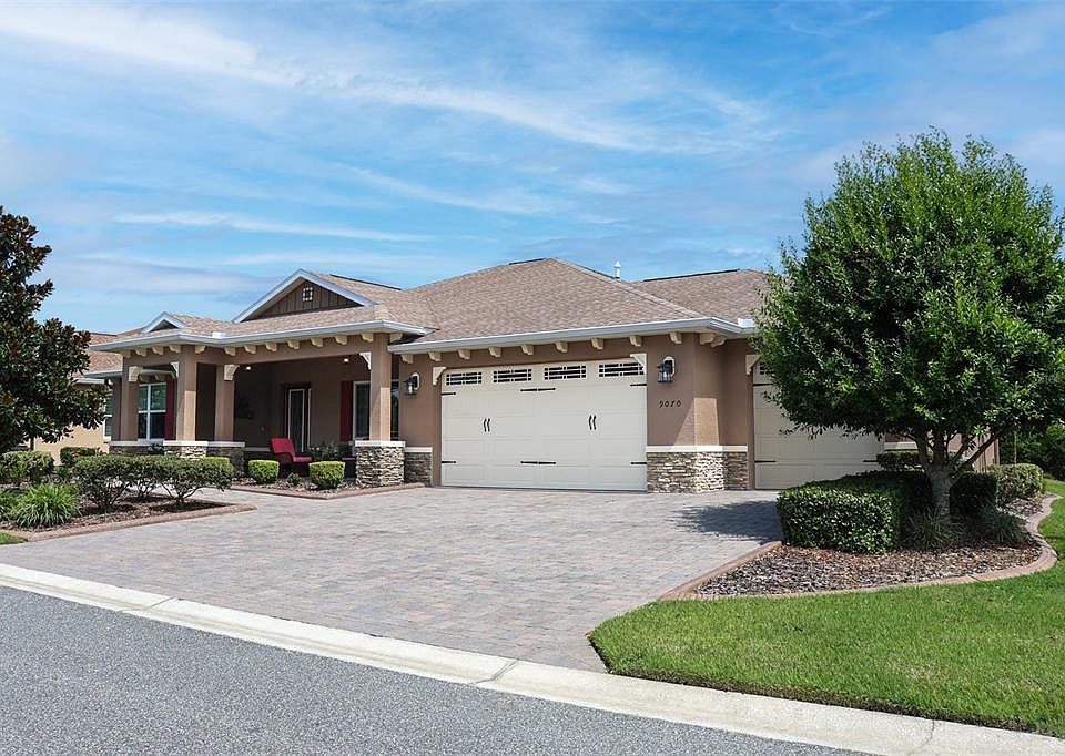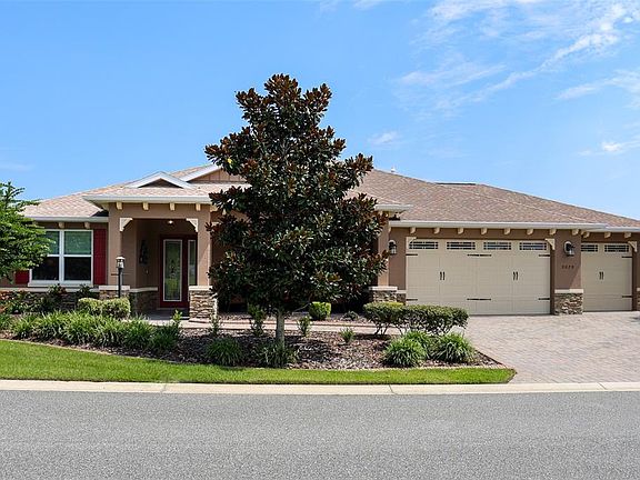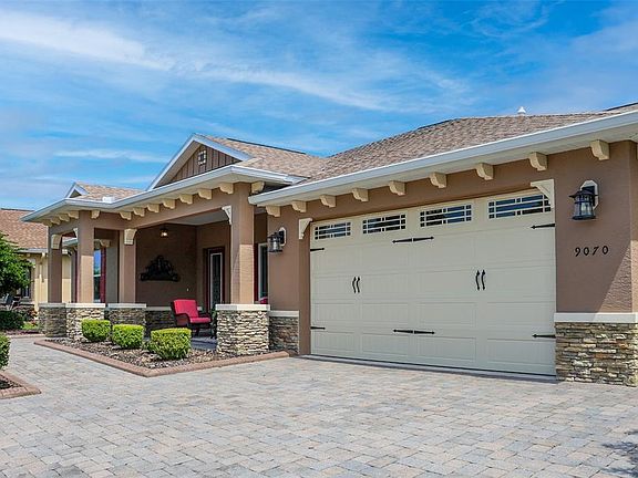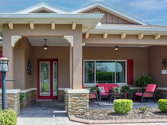 A number one choice for 55 + communities in Florida! On Top of the World! This beautiful Brighton model has been decorated by a Professional Interior Designer! Imagine yourself relaxing with friends on this roomy front porch! The exterior was recently repainted with a special paint made to last a long time! From the moment you step inside, you will feel the calming vibes!! Everything is ready, so drop your bags and go enjoy Ocala. The horse capital of the World! Explore the nearby natural Springs. There are 7 of them. It's 45 minutes to Cedar Key. 70 minutes to The Hard Rock Cafe, Orlando and Tampa. Oh, and outside your door, Pickleball, Dancing, Acting, every hobby you can think of...did I mention the built to code hobby room in the garage of this home? WOW!