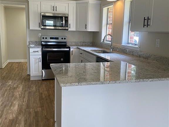 Original hardwoodsBeautiful kitchenStainless steel appliancesGranite countertopsVinyl plank flooringNew cabinetsLarge family room