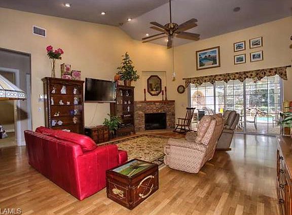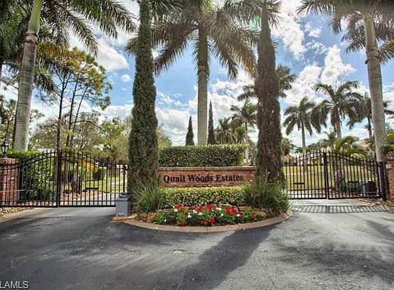 Quail Woods Estates is one of Naples best kept secrets. Secluded just west of I-75 near Livingston Rd. off of Immokalee Rd. An Olde Florida style home with 3BR and 3 1/2 Bath plus a den. The kitchen and great room with their cathedral ceilings and open concept invite comfort and conversation. The great room with its beautiful stone fireplace looks out onto a large lanai enhanced with a natural rock waterfall running into a large pool and spa. The grill master will enjoy the large grill area that compliments the beauty of the pool and waterfall rocks. The kitchen is unique with its large island and 6' black wrought iron pot hanger. The backyard is enclosed within a fence to ensure the safety of children and/or pets. You can enjoy the relaxed atmosphere of woods and an environmental canal that has a wooden brighe to gain access to the other side.