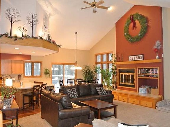Minocqua Country Club Estates home. Deeded boat slip & swimming beach on Lake Minocqua, included & accessible via golf cart! This 2.6 acre parcel is the largest private lot on the historic & renowned Minocqua CC. Wooded setting, overlooking holes 6 & 7, located near the end of the road. Spacious 1.5 story home features 4 bdrms & 3 full bathrooms. Main floor offers a master bdrm suite w/ walk-in closet, large kitchen w/ new appliances, great room w/ soaring ceilings & wood burning fireplace. The west facing deck reveals tantalizing views of the golf course & sought-after year round sunsets. Second floor provides two add'l bdrms & updated full bath. Walkout lower level showcases a large family room w/ wet bar, surround sound & new carpeting. Fourth bdrm & tastefully updated 3rd full bath, laundry room & multiple storage closets round off the LL. Add'l attributes include: Blacktop driveway, att 2 car garage, natural gas, hi-speed cable/internet & low RE taxes. Exceptional value!