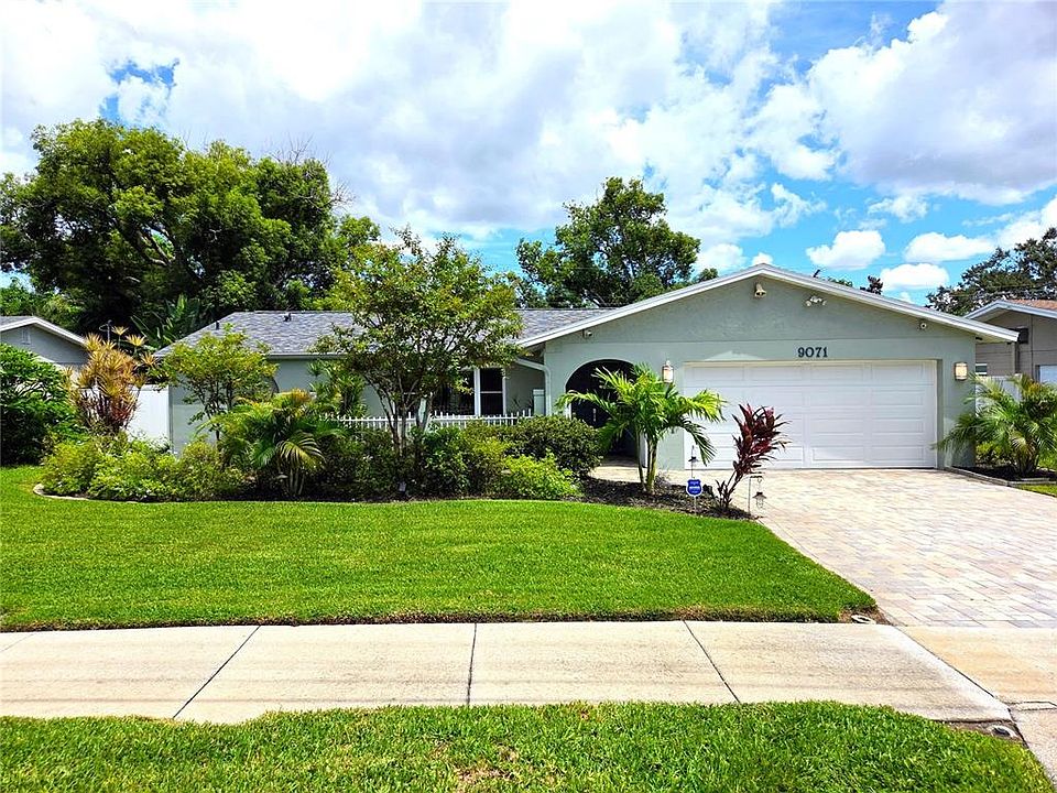 Beautiful home in Seminole available for Annual Lease. This charming home has been updated throughout and offers a lot of curb appeal and a desirable location near great schools, shopping and more. The bright and spacious home features tile floors, vaulted ceilings and lots of open welcoming space. The open concept with Living Room and separate Dining Room center around the handsome Kitchen with light wood cabinets, stone counters, stainless appliances and plenty of storage and prep space. The split floor plan features three bedrooms with the main bedroom on one side featuring a custom designed walk-in closet and en-suite bathroom. The other two bedrooms located on the opposite side share a spacious bathroom. Enjoy the lovely fenced yard with tropical landscaping and pavered patio with beautiful arbor to entertain family and friends, the pavered drive and two car garage. A new roof was installed in 2023 and also a new HVAC. Additional upgrades include hurricane-resistant new garage door, and front door and newer windows. The 2-car garage includes a washer, dryer, work bench and electric car charging outlet. There are two sheds with electricity and one has AC. Near Seminole City, beaches, shops and restaurants. Security deposit one month rent. Application fee $65 per adult, tenant processing fee $100. Two pets up to 35 lbs with owner approval. Renters to pay renters insurance and benefits package at $45 month. Rent includes lawn care.