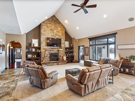 This property is truly one of a kind! Its spacious layout and thoughtful design create the perfect blend of comfort and functionality. The expansive kitchen, featuring double islands that is a chef's dream and a social centerpiece - ideal for gatherings and entertaining. Stunning views from the dining and living rooms add a touch of charm, making everyday living even more enjoyable. The luxurious main suite offers a spa-like retreat with a walk-in shower and whirlpool tub, while the convenience of main-level laundry adds ease to daily life. 3 additional bedrooms on the main level, a zero-entry feature, and a heated 4-car garage with a dog washing station ensure this home suits a variety of lifestyles. The lower level features a spacious family room and extra bedrooms, providing plenty of room for guests or family activities. The potential for in-floor heating adds a cozy touch during colder months. Outside, the stamped concrete patio and the impressive 48x84 shed - complete with a bar area, loft, bathroom, and office space - offers endless possibilities for outdoor living and hobbi