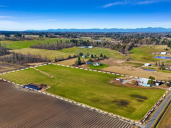 Value in the land and outbuildings. Home is 2 bedrooms, 1 bath 840 sq ft and needs work. This nearly 20 acre, flat piece of property, with views of Mt Baker, has lots of possibilities. Several out buildings including a 64' X 52' heated shop, 24' X 70' lean-to, 24' X 100' shop, 20' X 50' covered parking, two 20' X 24' shops, 10' X 24' enclosed storage area, and another 16' X 70' shop. Water use for domestic, stock watering, and irrigation of a lawn and garden.