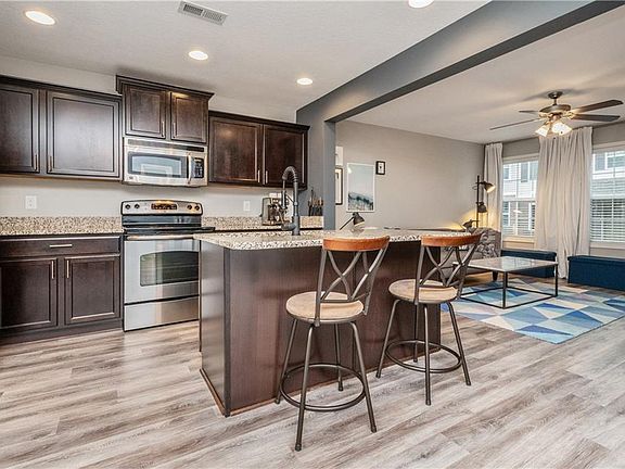This modern end-unit townhome has had luxurious upgrades that make it stand out. Attached two-car garage with Gladiator track walls for endless organization options. Kitchen boasts granite countertops, stainless steel appliances, and dark espresso cabinetry, with modern stainless steel hardware. Brand new luxury vinyl planking flooring downstairs and brand new carpet with upgrading padding upstairs. Matte black faucets, modern lighting, and energy-efficient LED light bulbs throughout. Many smart-home upgrades that are hard to find elsewhere like Lutron Caseta WiFi light switches and an upgraded Schlage Sense smart deadbolt. Ethernet ports in every room, so the HOA-provided internet is easily accessible. The EcoBee smart thermostat allows you to check and set the temperature from anywhere on your phone. The location is also fabulous and in a rapidly growing area -- within walking distance to tons of new dining and shopping options. Call today for a private tour or more information.