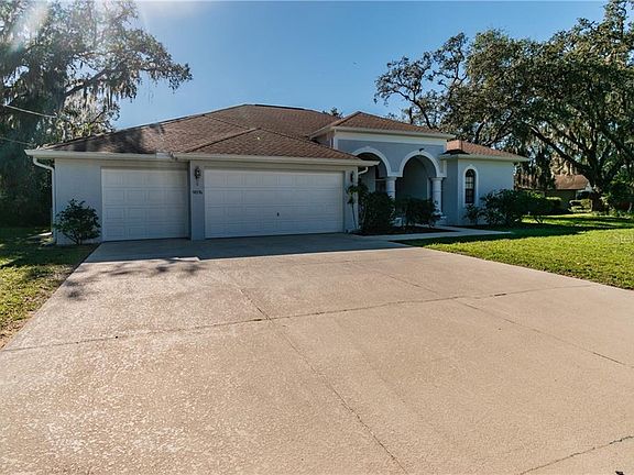 Price IMPROVED!! Look no further! This home has everything you're looking for! This 4 bedroom/3 bathroom/3 car garage/HEATED POOL home, offers plenty of space for you to enjoy the highly sought after, Florida lifestyle. This home was just professionally painted inside and out. It boasts a formal dining area, family room and great room with cozy fireplace. The sliding glass doors in the great room open onto the enclosed pool area with plenty of space to entertain a number of guests. The roomy, open kitchen includes all appliances and has plenty of counter space, cabinets and a spacious pantry to suit even the largest of families. Enjoy high/tray ceilings throughout and a split bedroom plan offering privacy for guests. Large guest room/mother in law suite with en suite that leads to the pool. Enjoy a large master bedroom with views of your gorgeous pool, oversized shower, double vanity and double walk-in closets. It includes the convenience of an indoor laundry room with washer/dryer included & utility sink. This home was previously a vacation rental so it is in pristine condition. Septic tank was just recently emptied as well. This home sits on a beautiful oversized lot that offers a breathtaking, backyard water view and quiet neighborhood. Remediated sinkhole in 2013. Engineering report is attached and the home is fully insurable. Schedule your showing today because this gorgeous home will not last!