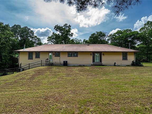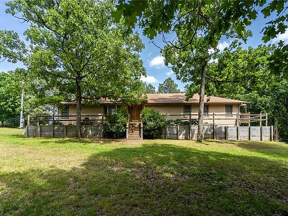 Welcome to this private retreat nestled on 19.89 Acres of serene beauty. This magnificent 3 BR, 2 BA home spans 2212 Sq Ft offering ample space for relaxation & versatility. The primary BR is a true haven, featuring a flex room that can serve as a private sitting area, a home office or even a nursery. The primary BR grants easy access to the laundry room, making daily tasks a breeze. With a split floor plan, this home ensures privacy & a seamless flow throughout. Additionally, peace of mind is guaranteed with an underground storm shelter, providing safety during inclement weather. There is a two-car attached garage on the lower level, accessible via an elevator, ensuring security & convenience, In addition, a 1 car detached garage is also available, offering additional storage. The property boasts a 16 X 20 pole barn, with a mix of wooded & open land. Convenience is at your fingertips, as this private oasis is located near Bentonville, XNA, dining & shopping. Come & experience serenity & versatility here.