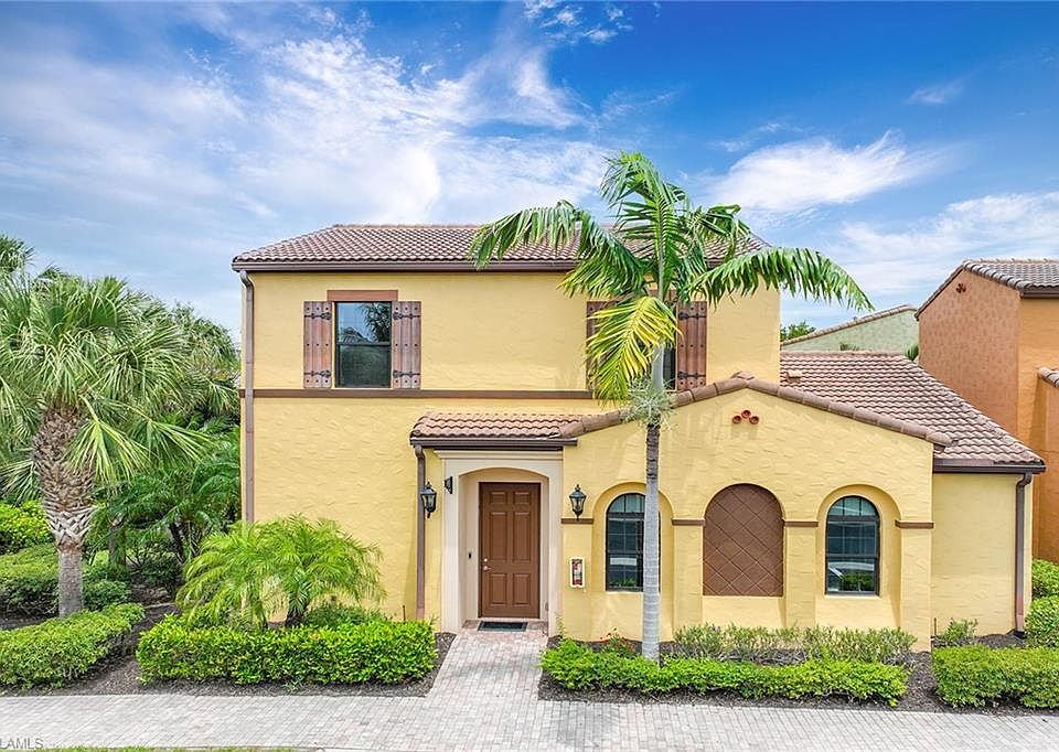 Welcome to an opportunity to own an Escondido Casita model in Lely Resort's Olé community. The owner's suite on the ground floor is a coveted feature that sets this rare gem apart, with a gourmet kitchen featuring luxurious quartz counters, stainless steel appliances, premium depth cabinets, and a convenient wet bar galley. High-end tile and flooring throughout the living spaces add elegance and style. The Escondido Casita offers maintenance-free living with a single-family home's privacy. The primary bedroom, primary bath, and powder room are on the ground floor, while two additional bedrooms, a full bathroom, and an open den or rec room are on the second floor. Residents of this community enjoy amenities spanning 20,000 square feet, including a resort-style pool with food and drink service, fitness center, movie theater, pub and bistro dining, ice cream parlor, and a kiddie pool area. Sports enthusiasts can enjoy tennis, basketball, pickleball, bocce ball, volleyball, and more. The community has green space and is near Marco Island and downtown 5th Avenue Naples for easy access to area attractions and amenities. Don't miss this chance to own paradise in Olé at Lely Resort!