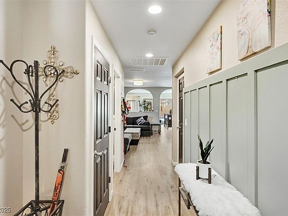 Spacious 5-bedroom home in popular Southwest Las Vegas! Features 2 large lofts, 3.5 baths and an open-concept great room with updated kitchen and stainless steel appliances. Large eat-in kitchen and extra patio dining just outside the kitchen patio doors. Luxury vinyl flooring throughout the first floor. Downstairs Master Bedroom is spacious with large primary ensuite including dual sinks, separate shower and soaking tub. Second Floor has a large loft, 3 more bedrooms (some with walk-in closets) and a hall bath with dual sinks. Extra storage for linens and personal items too! Third floor has an additional loft/den area great for a hobby room/game room/crafts/office/workout area...you name it! Or use the 3rd level as a separate apartment that is equipped with the 5th bedroom, the large loft and another full bath. Backyard is finished with turf and ready for all the fun!