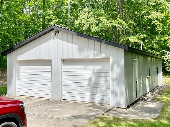 Private Haven on 10 Wooded Acres with Charming Home - Approach this true oasis via a private drive that winds thru the towering canopy of hardwoods, ensuring peace and tranquility. A spacious but cozy retreat awaits—a place to unwind, surrounded by nature. Imagine sipping coffee in the morning or hosting gatherings on this expansive porch, surrounded by lush greenery. Abundant living space that flows from the family room/den with toasty wood stove, thru to the central gathering room and well-appointed kitchen and dining. This house seamlessly combines comfort with contemporary living. 28x40 heated garage with workshop has space for your hobbies, tools, and storage needs.
