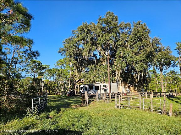 34.87-acres is situated just a few minutes from downtown Sebring. The "Old Florida" wooded landscape surrounds the property to provide one with much privacy. The owner was meticulous when he designed the RV pad. The elevated concrete pad is 45 x 60 feet and has a 32 x16 feet Steel roof canopy for your RV with RV hookups. An outdoor Kitchen with a stove, refrigerator, microwave, TV, sink, and cabinets was built under a giant Oak tree. A stand-alone 14x17 feet bath house with a handicap accessible shower, toilet, hot water heater has title floors. A private well, electricity and High-speed internet all connect to the RV pad area. This agriculturally zoned property has Bahia pastures, fenced and cross fenced for cattle and horse ranching. The wooden fenced yard sets off the property. While I was viewing this listing 3 deer walked through the woods next to me. This is a unique property with much natural beauty.