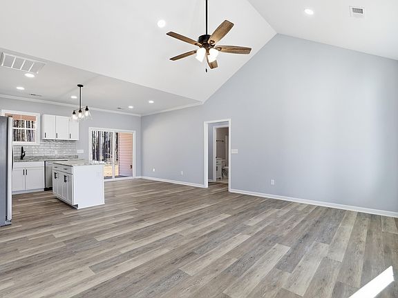 Brand new, single-level construction on .60 acres with NO HOA in Williamston! This thoughtfully designed 3BR/2BA home with a 2-car garage offers approx. 1,389 heated & cooled SF and higher-end finishes rarely found at this price point. The open layout features a vaulted living room ceiling with abundant natural light, flowing into a stylish kitchen with beveled granite countertops, stainless steel appliances, and ample cabinetry. The primary suite impresses with double-vanity granite, a walk-in tile shower, and an oversized walk-in closet with tray ceiling and built-in shelving, conveniently connected to the walk-in laundry room. Enjoy outdoor living on the large covered patio overlooking a level backyard backing to mature pine trees. Quality craftsmanship, functional flow, and upgraded exterior details including coordinated porch columns and garage door give this home a custom feel. Convenient to shopping, dining, and local amenities — a must-see new construction opportunity.