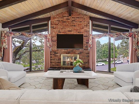 This mid-century contemporary is a true 70's classic—bold, bright, and full of character! You'll love the large windows with sweeping views, vaulted ceilings in the main living and dining room, and a wraparound deck made for relaxing or entertaining. With 2,422 sq ft of total living space, this home features 3 bedrooms, 2 full baths, abundant storage cabinets, and a finished daylight basement complete with a wet bar—great for relaxing or spending time with friends. There's also a fully finished detached storage space perfect for hobbies, creative projects, or extra room to spread out. All on a generous .37-acre lot.
