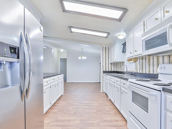 Welcome Home! This open concept move in ready 4 bedroom, 2 bathroom home features new roof and new hardie board underpinning installed December 2019. Off the main road and very private. Kitchen completely remodeled 2002 to include all cabinets and appliances. Dream master with walk in closet and separate office/nursery space with beautiful french doors. Master bathroom has large whirlpool tub and separate shower. Enjoy your wood burning fireplace on cool nights in one of your 2 living areas. Formal Dining as well as Eat in area within this open concept make this home a must have! You may enter through the mud room on those rainy days and "wash up" in the separate sink which is so handy after a playful day outdoors. Large deck to enjoy your spacious private fenced in back yard for star gazing and moon watching. Home has been detitled and ready for you to Move In!