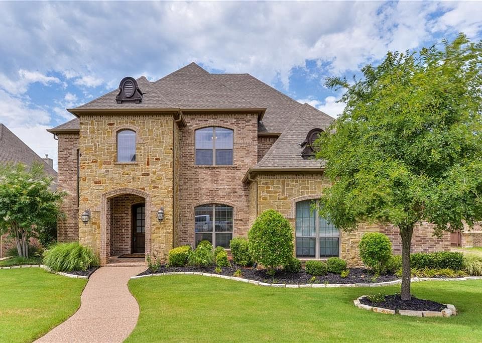 Beautiful custom home in desirable gated neighborhood and centrally located with easy access to freeways. This was the home of a former Texas Ranger baseball player! Exceptional high-end finish out includes: hand-scraped wood floors, decorative iron stair case, over sized baseboards and moldings plus a custom inlay floor. The floor plan offers a downstairs master suite, additional bedroom down, designated office, upstairs game room plus 4 and a half bathrooms. The private guest suite upstairs has a full bathroom and could be used as second master...ideal for multi-generational living. Back yard has a heated pool, spa, covered patio and private access to Bob Eden Park. Neighborhood lake included!