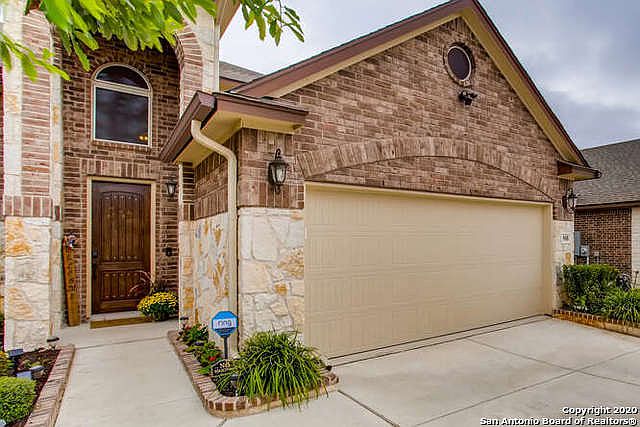 Only gated neighborhood in Cibolo! This gorgeous Chesmar home has 4 bedrooms, 3.5 bathrooms, a study and game room and is located within the premier master-planned community, Mesa at Turning Stone. This open concept home has granite countertop, upgraded backsplash, walk-in pantry and closets, GE stainless steel appliance package, smooth cooktop, 42" flat panel cabinets, crown molding in dining room, kitchen/breakfast/family room, separate vanity sinks and separate tub and shower in owner's suite. Large game room could be a second living area. This home has 4-sided masonry, covered patio and seller added paved walkways on each side of the home, extended slab and pergola w/a swing and various citrus trees in backyard, upgraded light fixtures with the Texas theme, solar screens, Ring system, storage rack in laundry room and bike rack in garage, flood lights on back of home and a water softener. Located on the North-East side, just 1.5 miles from I-35N and 7 miles from Loop 1604 and 7.8 miles from JBSA Randolph. It is located in the recognized Schertz-Cibolo City Independent School District, and high school students attend Byron P. Steele High School. Short distance to EVO Entertainment, Santikos, HEB Plus, Walmart, shops in the Forum, Schlitterbahn Waterpark and restaurants.