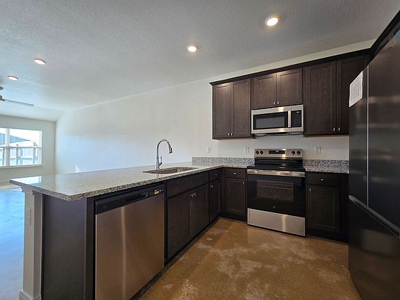This brand new duplex boasts 3 spacious bedrooms and 2 full bathrooms, perfect for those seeking ample living space. The apartment is equipped with central heating and air conditioning, ensuring your comfort in all seasons. Each room is fitted with ceiling fans for an added layer of temperature control. The property also features a state-of-the-art sprinkler system for your safety. Enjoy the privacy of your own fenced yard, a perfect spot for outdoor relaxation. The apartment comes with a one-car garage, providing secure parking or additional storage space. The interior is beautifully finished with stained concrete, giving the space a modern and stylish appeal. Don't miss out on this exciting opportunity to make this brand new duplex your new home!