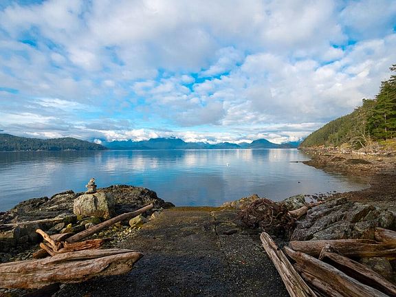 One of Bowen's best westside properties! This incredibly rare 1.2 acre crown-strip waterfront property is uniquely situated just beside quiet Clipper Beach, and faces west for year round sunsets and a mesmerizing marine outlook. Very private, with access to an old boat launch. Humpbacks and orcas are known to swim past, and summer nighttime bioluminescence swims are a must. The home would be a fun project for those who are handy - primary bedrooms either above or on the main, and a 1 bedroom guest suite below with separate access. Lots of deck spaces, and plenty of parking/room for workshops.