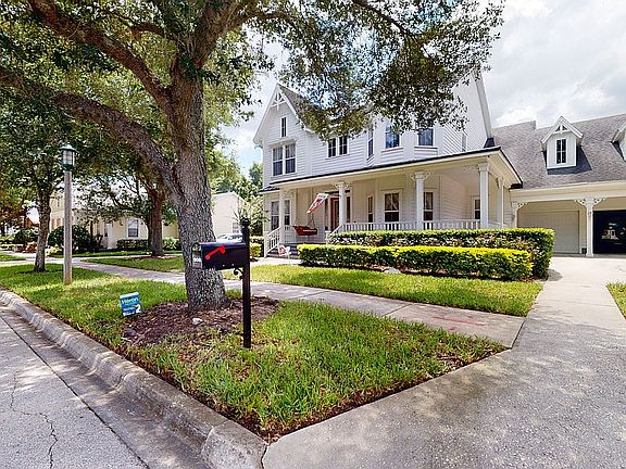 Sit on the front porch of this beautifully maintained 4 bedroom, 3.5 bath home on a secluded conservation lot. This David Weekly Treefair is just steps away from South Village pool and playground and features a downstairs master bedroom, private office, amazing resort style pool with waterfalls and fire-features, playroom, gym (or theater room), and 50's themed bonus room. The seller also recently installed solar panels for $50k (not leased - already paid for!!) which saves thousands of dollars a year on energy costs. They also invested in a state of the art security system and new exterior paint in 2018. The first floor of the home features a formal living and dining, a well appointed office/study with floor to ceiling built in natural cherry cabinets and desk, a large kitchen with breakfast bar, cooking island, and double oven. The open floorplan leads to a generous sized family room with a large wall of windows, letting in lots of light and a view of the pool and conservation. Upstairs is a well appointed, professionally decorated bedroom with a charming window seat and an ensuite bath equipped with a walk in tub. Next is a Pirate themed room, with wall murals painted by a Disney Imagineer, a connecting jack and jill bathroom, on to a cabin retreat room with cedar lined walls and oak plank flooring. The upstairs 50's themed bonus TV room will provide hours of entertainment complete with a boomerang bar countertop, diner booth, a high gloss wood laminate wall (found in diners around the world) and trendy checkerboard tile floors. Adjacent to the diner, take a few steps down to the gym which can also be converted to a media/theater room. Now out to the outside pool area - where the seller spared no expense! This resort -style salt water pool is complete with waterfalls, fire features, fiber-optic lighting, in-water seating, and a slide with faux rock steps. The area is screened which allows for hours of entertainment, well into the evening, taking advantage of the tiki bar, with 2 refrigerators, a gas grill, and custom lighting throughout. This is truly an entertainers dream and it all can be controlled with the touch of a smart- phone. Call TODAY to take a look at this one of a kind home. You won't be disappointed!