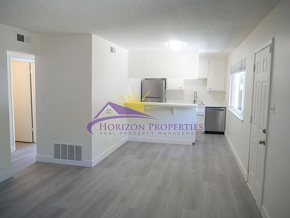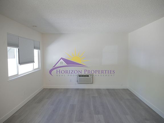 Near Northrop Avenue and Fulton Avenue in the Arden area, Sacramento, this remodeled fourplex unit offers two bedrooms and one bathroom. The entry opens onto new laminate flooring, dual pane windows, new closet doors, new pleated binds, central heating, 2 wall air conditioning units, and fresh paint throughout 700 square feet of living space. The living room has a in wall air conditioning unit and the dining room has overhead lighting.