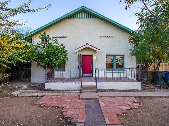 This historic adobe house was built in 1911, and retains most of it's original features and fixtures. High ceilings, hardwood floors, arched openings, and wooden sash windows all contribute to the vintage charm of this house. Check out the beautiful O'Keefe and Merrit gas stove in the kitchen! This house is located in a really neat enclave of historic homes, just north of Ft Lowell Rd, between 1st Ave and Mountain. The Mountain Ave bike path is only three blocks away, and provides easy bike access to the UofA and the Rillito River Park, with additional bike trails connecting the entire north side of Tucson. Full height basement is included, and makes a great workshop or storage. Huge lot stretches from Freeman to Halcyon- great potential for a second unit or garage.