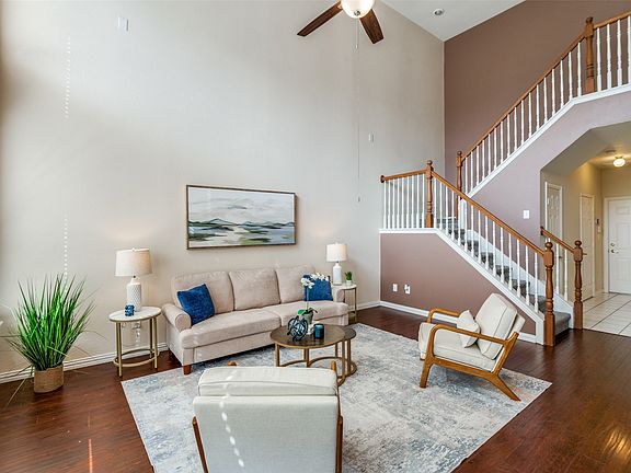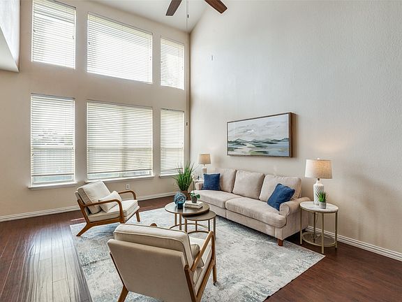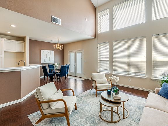 Bright and open with tall ceilings and a wall of windows in the living room that flood the room with natural light. The open feeling continues in the delightful dining area with french doors that lead to a small patio, perfect for a small garden or pet. The kitchen is well equipped with good storage and prep space PLUS a breakfast nook. The utility room is nearby with additional room for storage. A powder bath completes the first level. There are two spacious bedrooms upstairs, each with an ensuite bath. The primary bathroom has a separate tub and shower. Residents enjoy two pools and well maintained grounds so upkeep is never an issue and you can leave the lawnmower behind. The convenient location close to Central Expressway makes it easy to get downtown for business or pleasure and popular restaurants and shops are nearby. This is a wonderful option for downsizing or first time homeowners in a central Plano location!