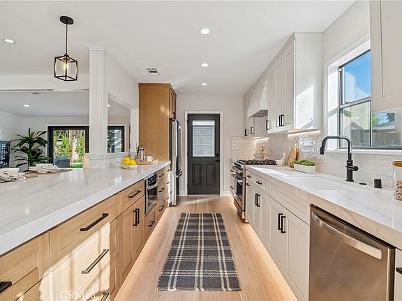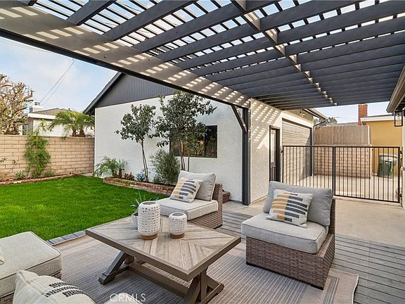 Step outside to a backyard designed for Southern California living — a pergola-covered patio, grassy area, and just the right amount of privacy for relaxing or entertaining. The oversized detached garage with tall ceilings offers plenty of room for storage, creative space, or future possibilities.