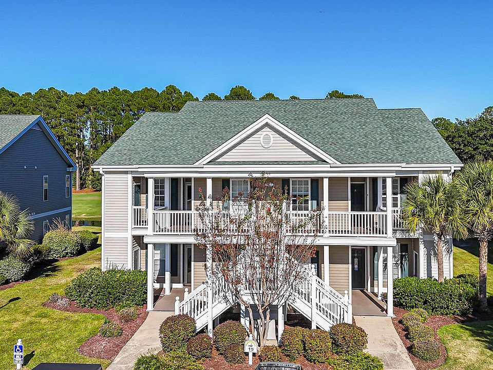 Great view of Piper Golf course in this beautiful and popular community! Location is prime to observe the golfers on hole #7(par 5) across the beautiful pond which hosts many types of birds and other wildlife. Across the street off the front porch there is a wide water view, and to the west the sunsets are amazing! Located on the top/2nd floor of Building 19 is a bright and open floorplan. Nice size living/dining area with a vaulted ceiling. LVP throughout the living space. Kitchen is laid out nicely, plenty of cabinets and nice pantry, appliances are clean and in great shape and working order. Washer/Dryer conveys. Primary suite is in the rear of the condo, separate from the guest rooms; a sliding glass door opens to the screened porch. Great golf community near beautiful Sunset Beach. This condo is sold furnished including all appliances. Very clean and move-in ready!! 2 community pools, 27 holes of golf- where you can play year-round. 3 beaches minutes away (SB, OIB and Cherry Grove Beach). Whether you live here part-time or fulltime, it is well maintained and very friendly. The condos may be rented for a great passive income. Or live here fulltime and see just how to coast by the sea! Come take a look and experience the relaxed life in South Brunswick, North Carolina.